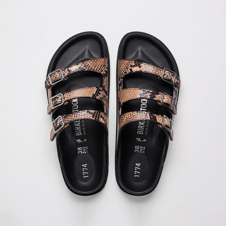 アイテムには、「BIRKENSTOCK」のクラシックなシルエットを再解釈し、鮮やかなスネーク柄をあしらった3型のサンダルが登場。