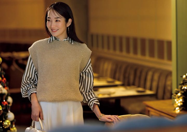 ラメが輝くベストを重ねれば表情まで華やいでアップデート