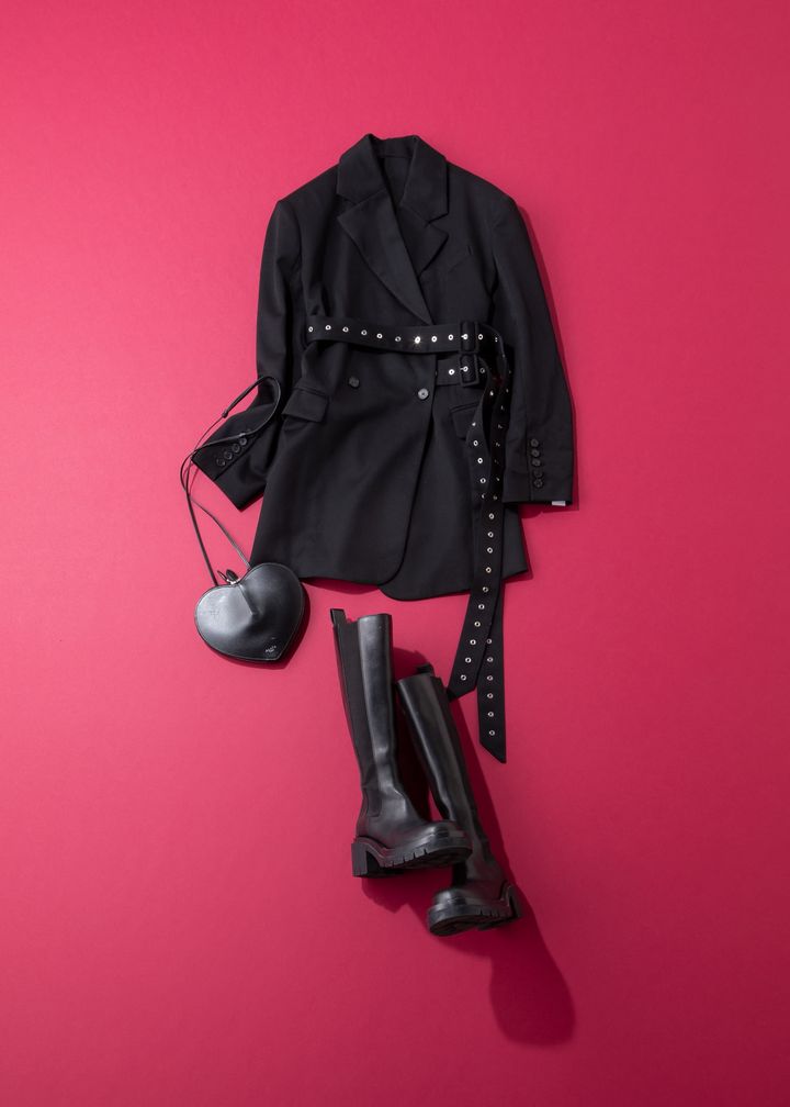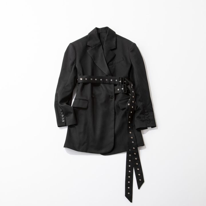 カッチリした四角いフォルムとエッジの利いた長く垂れ下がるダブルウエストベルトが特徴のブレザーは、それだけでコーデの主役に。インパクトのあるアイテムはイベントシーンに活躍してくれること間違えなしです。