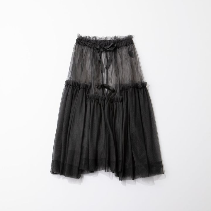 大胆なボリュームのあるチュールスカートは、コーデをドラマティックに演出してくれるのでイベントシーンにおすすめ。取り外し可能なサスペンダー付きでワンピースとしても着られて、前後2WAYでも着用可能なのでスタイリングの幅が広いのもポイントです。