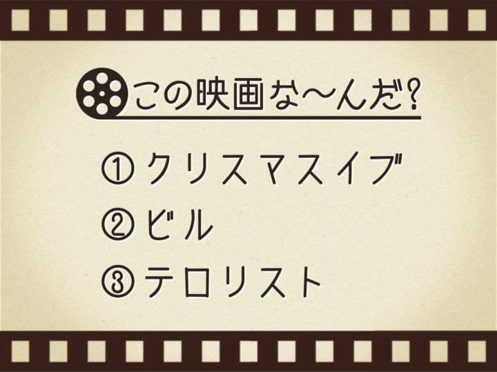 3. 【3つのヒントで映画を当てろ!】「クリスマスイブ・ビル・テロリスト」連想する名作は何でしょう?