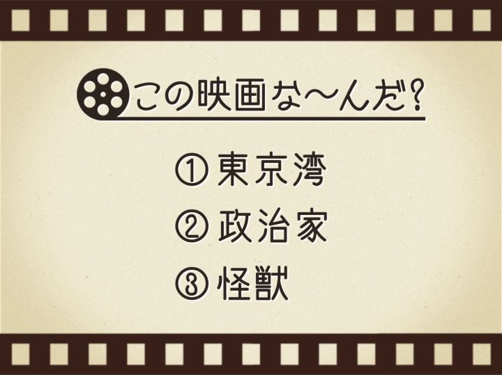 3. 【3つのヒントで映画を当てろ!】「東京湾・政治家・怪獣」連想する名作は何でしょう?