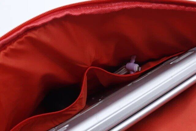 柔らかいスポンジ入りでPCを優しく保護でき、ガジェット類などが収納できる内ポケットも魅力。手持ちしやすいハンドル付きで、クラッチバッグのようにも使えますよ!