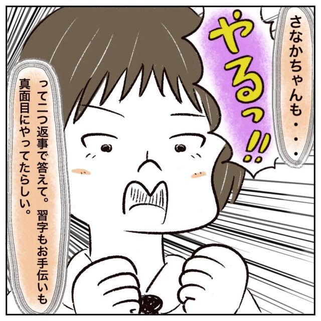 さなかちゃんも「やるっ!!」と二つ返事で答えたそうで、習字もお手伝いも真面目にやっていたといいます。