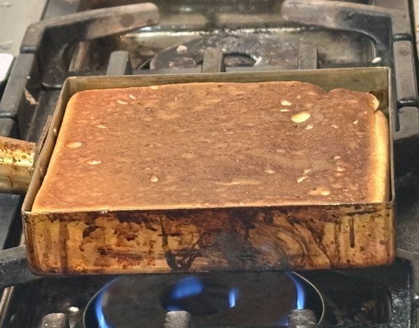 厚焼き玉子を焼くのに使うような、銅のフライパン!