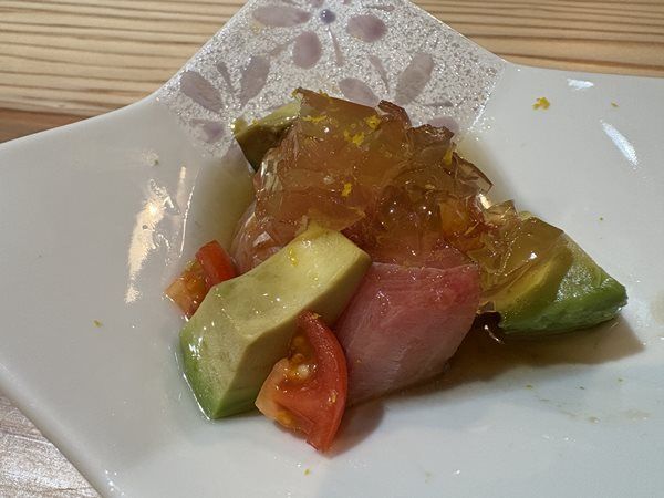 こちらはランチの前菜。 アボカドやトマトとブリが絶妙なコンビネーションです。