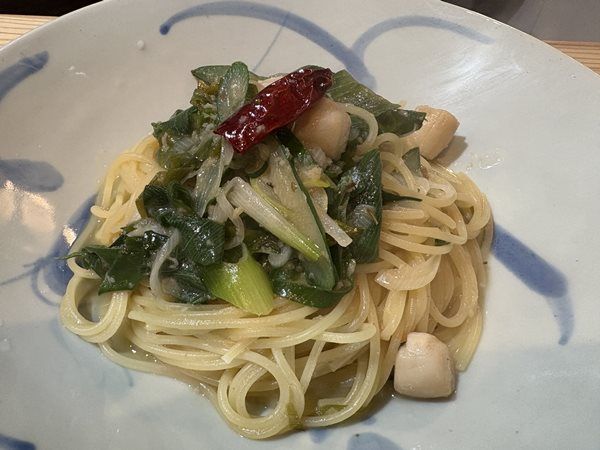 こちらが、ランチパスタ。 栃木市産宮ねぎとベビーホタテの塩バターソース。 生だととても辛いという宮ねぎが、非常に甘い! ぷりぷりホタテと良いコンビです。