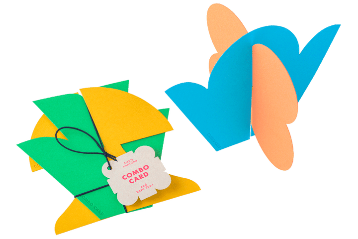 メールやSNSでのやり取りが当たり前になってしまい、身近な人が書く文字さえ知らないことに悲しく思う瞬間がある。たまには、手紙を贈るのも悪くない。クリエイターズクラブ「NEW」に所属する沖田颯亜が手がけたカードは、受け取ったあともオブジェとして飾ることができるポストカード。2枚の厚紙がセットになっていて、上下に入った切り込みに互いを差し込むことで立体になる。罫線がないため、寄せ書きにしても良さそう。