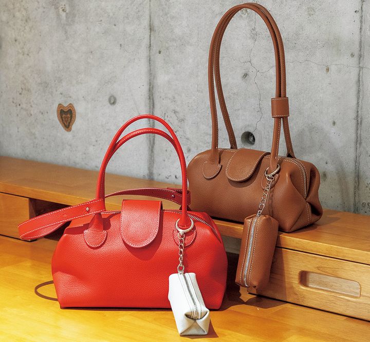現在はあえてショップを持たずECサイト、POP UPでの展開。旅好きなミンさんが現在提唱しているのが、写真のような大小2個持ち。小さな方は貴重品入れのポーチ感覚だそう。