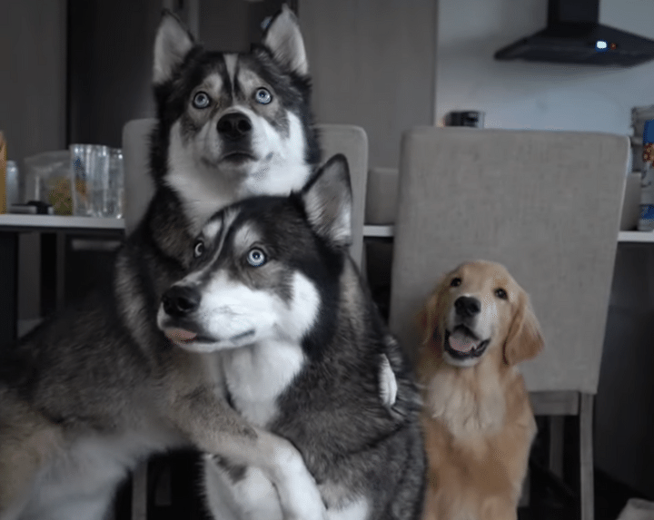 3. 可愛すぎる3匹の犬さん! ハグを覚えるとみんなで