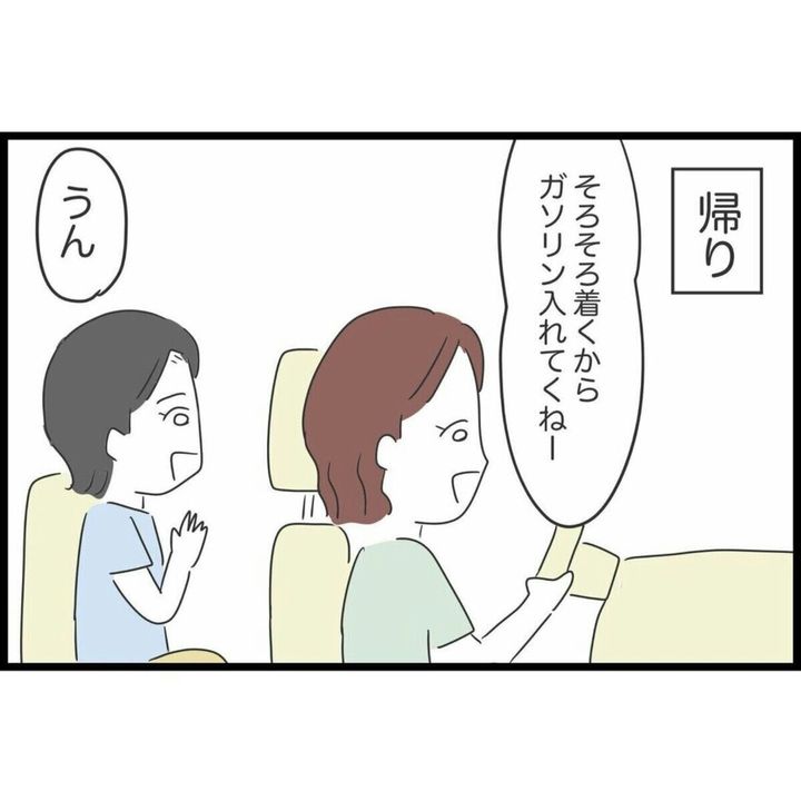 帰り道、ガソリンを入れガソリン代を友人たちに請求します。すると友人の1人が「(2日目の別行動で)すみれが1人で乗ってた分は引いてないよね?いくらくらいなんだろう?」と言い出します。