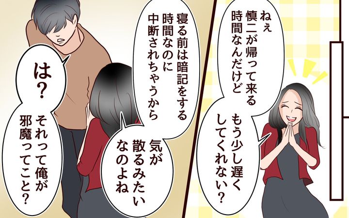 成績成績と口うるさい美咲と、のびのび育てたい慎二は意見が食い違い、対立することもしばしば。「受験のことは慎二に任せられない、自分がしっかりしなくては」と息巻いていた美咲でしたが…