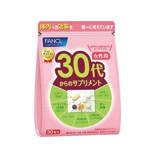 ライフスタイルの変化が大きい30代女性のための成分を厳選し、ワンパックにした便利なサプリ。30代からのサプリメント 女性用 30袋 ¥2,500(ファンケル)