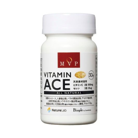 ストレスに負けない体作りに効果的なビタミンC、E、β-カロテンなどの栄養素をバランスよく配合。MVP ビタミンACE 30粒 ¥3,564(ネイチャーラボ)