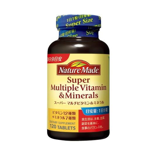 ビタミン12種類とミネラル7種類を1粒に。健康作りの基本に摂りたい。ネイチャーメイド スーパーマルチビタミン&ミネラル 120粒 ¥3,078(大塚製薬)