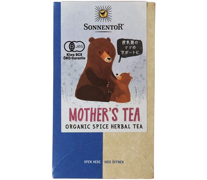 産後ママへ贈るなら、オーストリアのオーガニックハーブブランド「ゾネントア」の“マザーズティー”を選択肢に。授乳期によいとされるヨーロッパの伝統的なハーブをブレンドした優しい味わいで、もちろんノンカフェイン。絵本作家が描いたクマの親子のイラストに気持ちをほころばせてくれそうです。