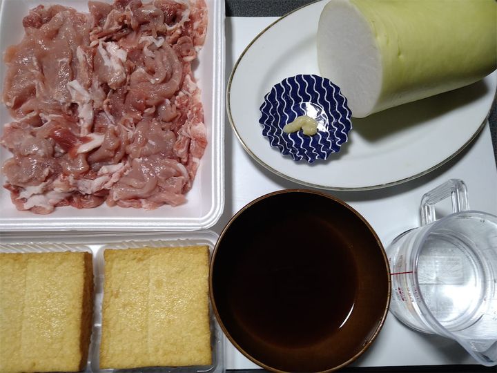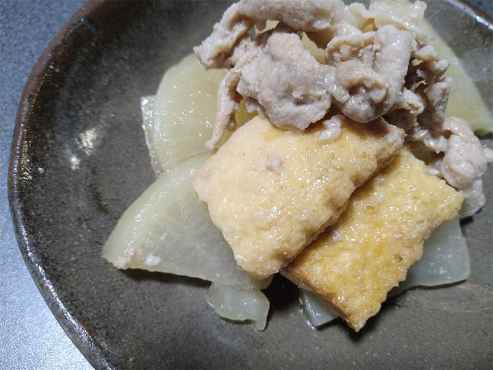 こんにちは!鹿児島県でとうもろこし・西洋野菜を栽培する農家の瀬川知香です。冬の定番、大根の煮物。ほろほろのシミシミでおいしいんですが、煮るのに時間がかかるんですよね…。ってことで、思いつきました!大根を薄めに切って事前にレンチンすれば、早く火が通って味も染みるはず。今回はこのテクで仕込みつつ、厚揚げと豚肉を加えてボリュームたっぷりに仕上げます。味付けは、めんつゆにしょうがを加えてポカポカ増しに。さっそく、クッキングスタートです♪
