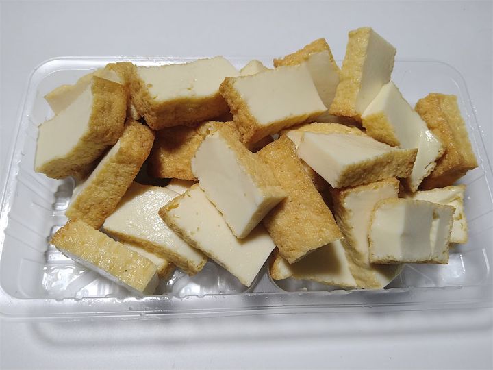 2.豚バラ肉は5cm幅に切り、厚揚げは1cmほどの厚さに切る。