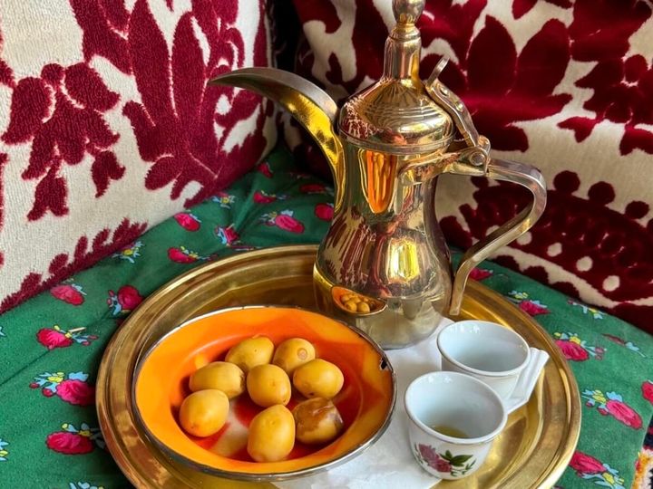 サウジアラビアに訪れると必ずいただくおもてなしが、サウジコーヒー。サウジコーヒーとは、コーヒー豆を黄金色になるまで焙煎して作られたものに、カルダモンやサフランといったスパイスを入れたもの。