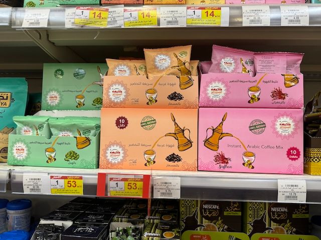 スーパーで見かけたスティックタイプの個包装サウジコーヒー(1杯200円ほど)