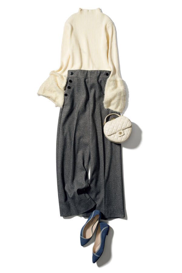パンツ¥5,498/grove(ワールド プレスインフォメーション) ニット¥2,998/Re:EDIT バッグ¥18,150、靴¥17,600/ともにダイアナ(ダイアナ 銀座本店)