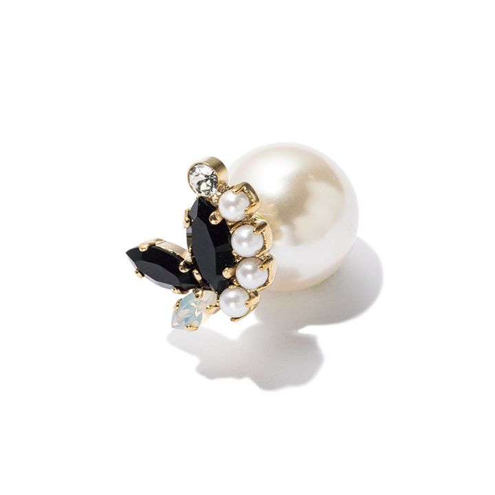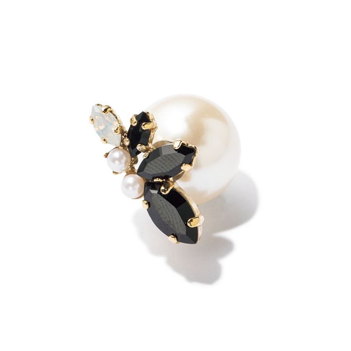 MAYU 2ブラックビジュークリスタルパールピアス ブラック×ホワイト Price_¥15,400