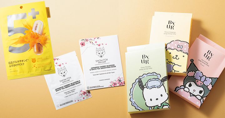 〈クロミ〉バイユア ビタギビング アクアセラムマスク〈ポムポムプリン〉プランプハニー アクアセラムマスク〈ポチャッコ〉スージンググリーン アクアセラムマスク 3種すべて25ml×4枚セット ¥1,480(Hamee)