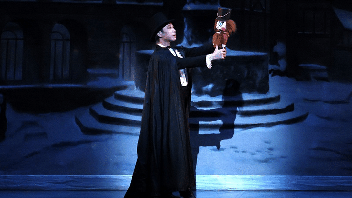 最初にステージ下手からくるみ割り人形を持ったドロッセルマイヤーおじさんが登場。