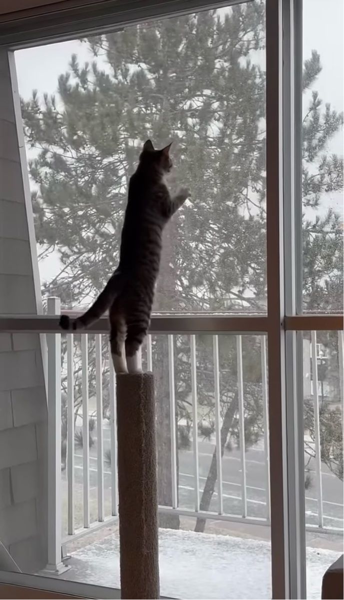 今回の動画に登場する子猫は、初めての雪に興奮が止みません! 窓に張りついて、空から降ってくる雪を掴もうと必死になっていました。