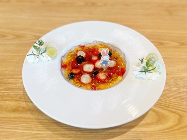 湖の上でミッフィーがスケートあそびをしているようすをイメージした「ミッフィーのスケートあそびブリュレ」(1,690円)は、ゼリーとブリュレの食感の組み合わせが新しいデザート。