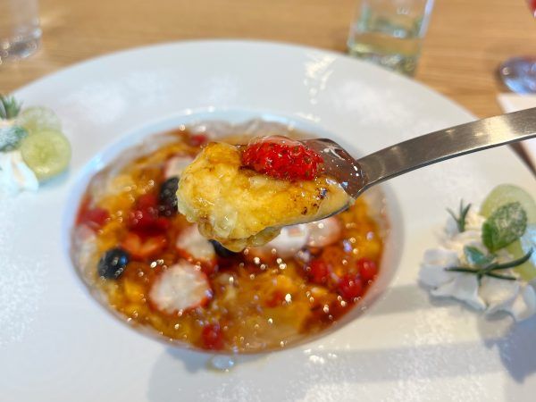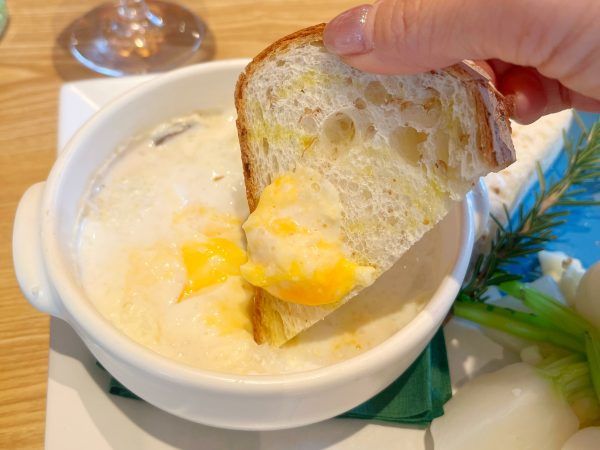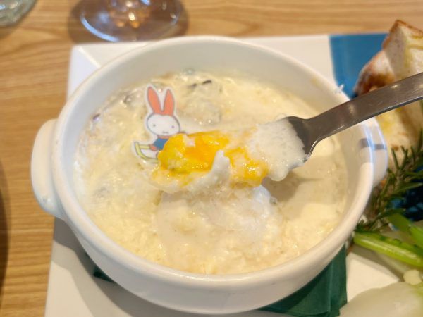 ふわふわな雪は細かいチーズで作られているので、グラタンの上で徐々に溶けていき、濃厚さがアップ!中には、ごろっとしたポテトがたっぷり入っていました。温泉卵も隠れていて、嬉しいサプライズに。