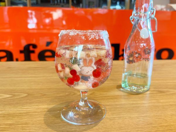 まるで、ミッフィーのスノードームのような美しい冬景色を堪能できる「ミッフィーのゆきあそびスノードーム風ドリンク」は、自分でソーダを注いでいき、グラスの中の変化も楽しめました(1,090円)。