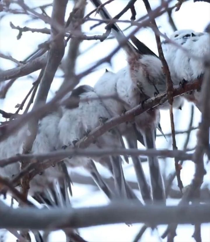 3. シマエナガ団子に後から1羽やって来たら・・。わちゃわちゃする様子に反響」「もふもふがたまりません」「暖かいところの取り合い」