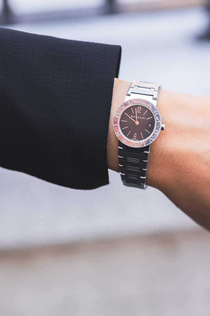 \アパレルディレクター・3児のママ/ 義母からの出産祝いでもらった 文字盤が黒でハンサムな印象の 「BVLGARIのブルガリ・ブルガリ」