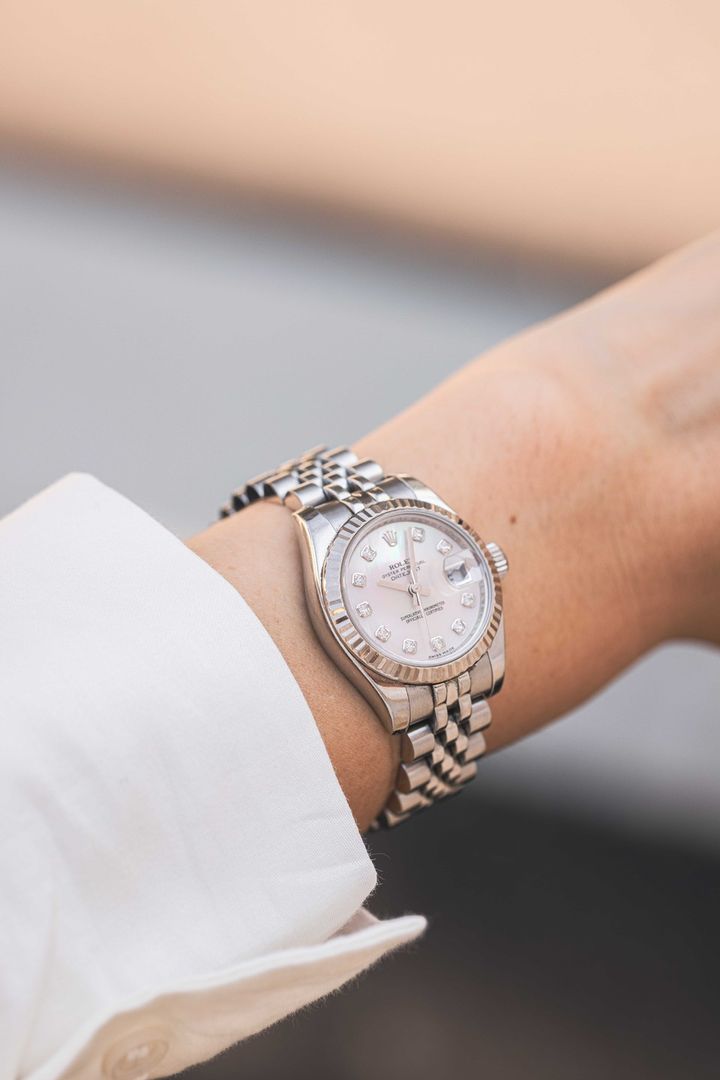 \専業主婦・3児のママ/ ダイヤとシェルがあしらわれた 「ROLEXのデイトジャスト」 園行事のコーデもワンランクアップ