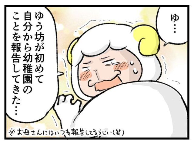 発音に難があり言葉で伝えるのが苦手なせいか、幼稚園での出来事を教えてくれないゆう坊君。