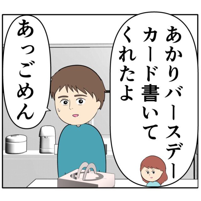「はい、これ。力作だよ」とあかりちゃんからバースデーカードをもらい「あかり、ありがと~」と喜ぶろみ緒さん。そんな2人のやり取りを微笑ましく見ていためいさんですが、このときはまだ知りませんでした。