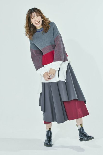 衣装協力:RANDOM STRIPE HALF KNIT ¥29,700、LAYER PARTS SH ¥37,400、ASYMME LAYERED ¥30,800、2WAY FULL MOON PIERCE ¥19,800/すべてUN3D.(靴は木村さん私物)