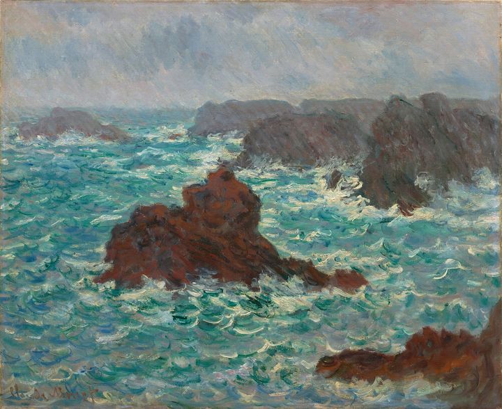 毛利氏が本作の源泉としたモネの1886年の《雨のベリール》は、雨の日にフランスの北西のブルターニュのベリール島でスケッチした後に油彩で描いた作品です。