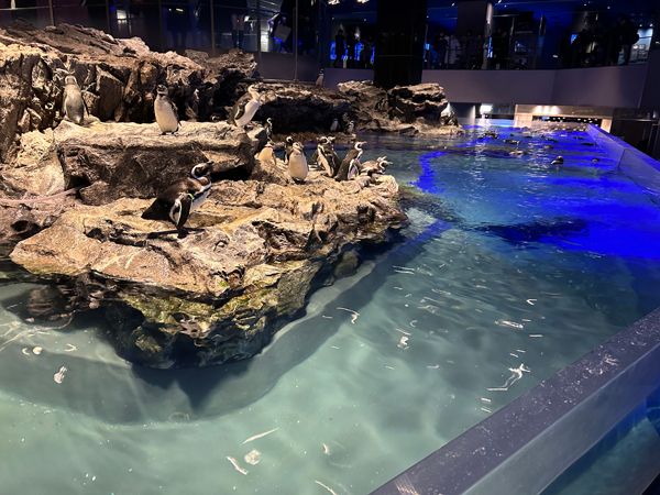 水量約350トンの国内最大級の屋内開放のプール型水槽ではマゼランペンギンを見ることができ、小笠原諸島をテーマにしたエリアでは世界自然遺産に認定された小笠原諸島に住む約45種類・450点の魚が泳ぐ大水槽も。