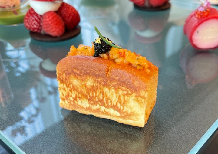 「大きいサイズで販売希望!(笑)」と、佐野さんと編集部がやみつきになったセイボリーはこれ。柚子風味のタルタルソースがかかったロブスターと塩気の効いたキャビアのバランスが天才的なんです。