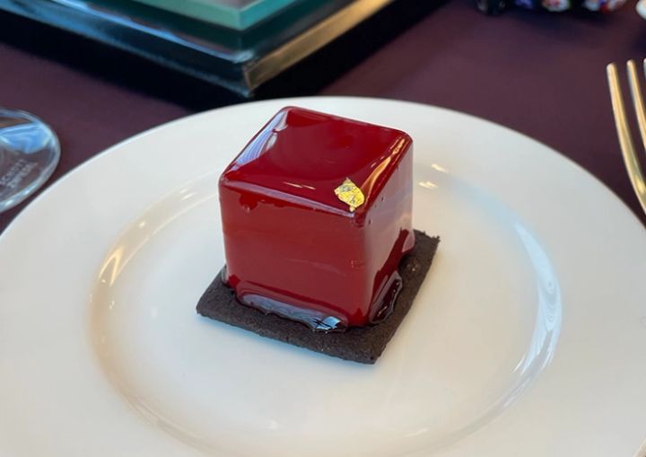 ムースは、カカオ74%のチョコを使っているので、みっちり濃厚なのにくどくないのがポイント。「こんなにもみずみずしさを感じるムースは初めて!果実酢のような酸味がパンチになっていて、刺激的なのに上品だから不思議♡」(佐野さん)