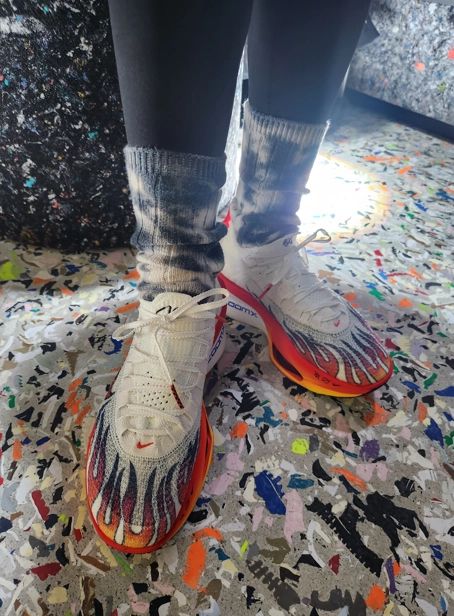 履いたのは新作の「ナイキ アルファフライ3プレミアム」。新年の駅伝を彷彿とさせる炎のデザインがカッコいい!