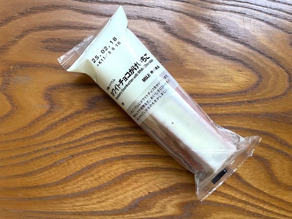 無印おなじみの不揃いバウムにも、冬限定で紅白カラーが登場しています。「不揃いバウム ホワイトチョコがけいちご」(220円)はいちごバウムにホワイトチョコレートをかけた一品です。