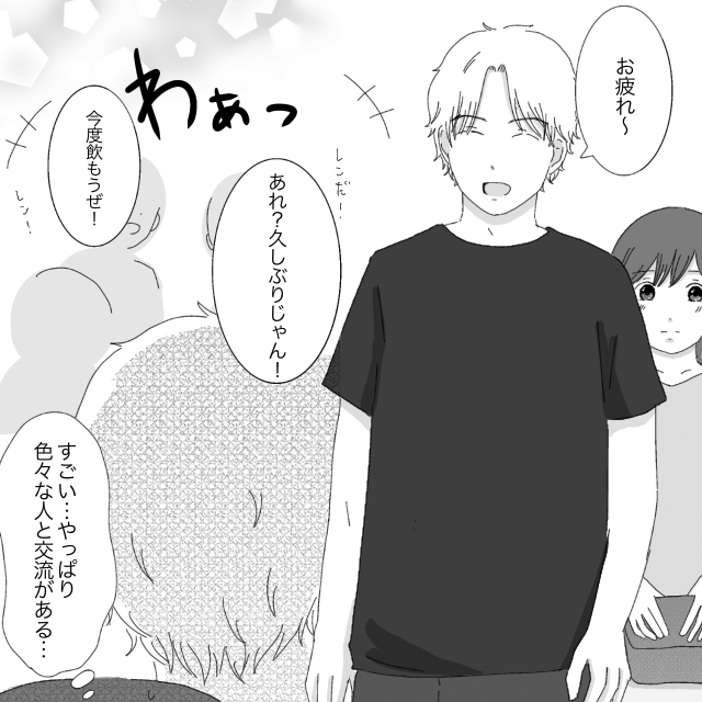 彼が「お疲れ~」と体育館に入ると、「あれ?久しぶりじゃん!」「レン!今度飲もうぜ!」とあちこちから声がかかります。「すごい・・・やっぱり色々な人と交流がある・・・」と改めて彼の交流の広さに感心。