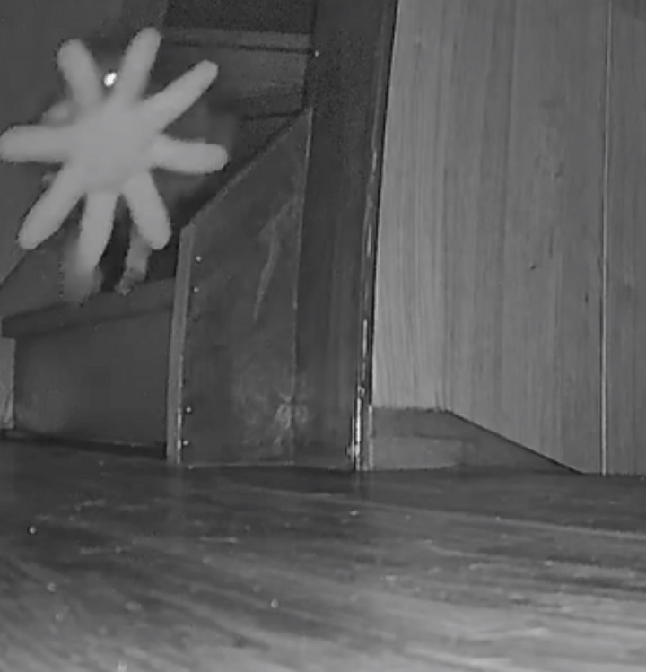 投稿者さんが、猫ちゃんハウスの前にカメラを置いたところ、真相が判明。なんと、投稿者さんの愛猫・なだちゃんがハウスへせっせとぬいぐるみを運び込む姿が写っていたのです。