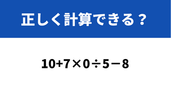意外と間違える大人が多いかも?!「10+7×0÷5−8」→正しく計算できる?