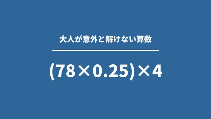 大人が意外と間違えやすい算数「(78×0.25)×4」→秒で計算できる?