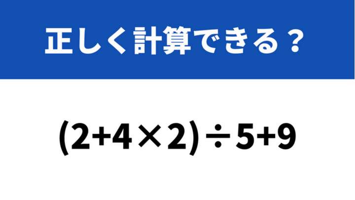 どこから計算するのが正解?!「(2+4×2)÷5+9」→正しく計算できる?