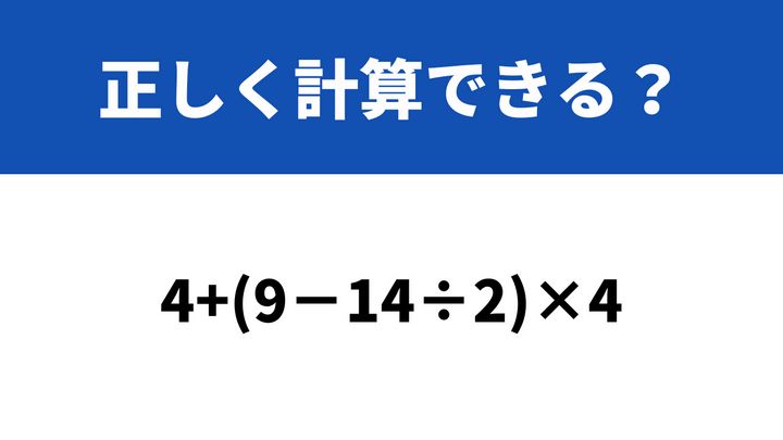どこから計算するのが正解?「4+(9−14÷2)×4」→正しく計算できる?